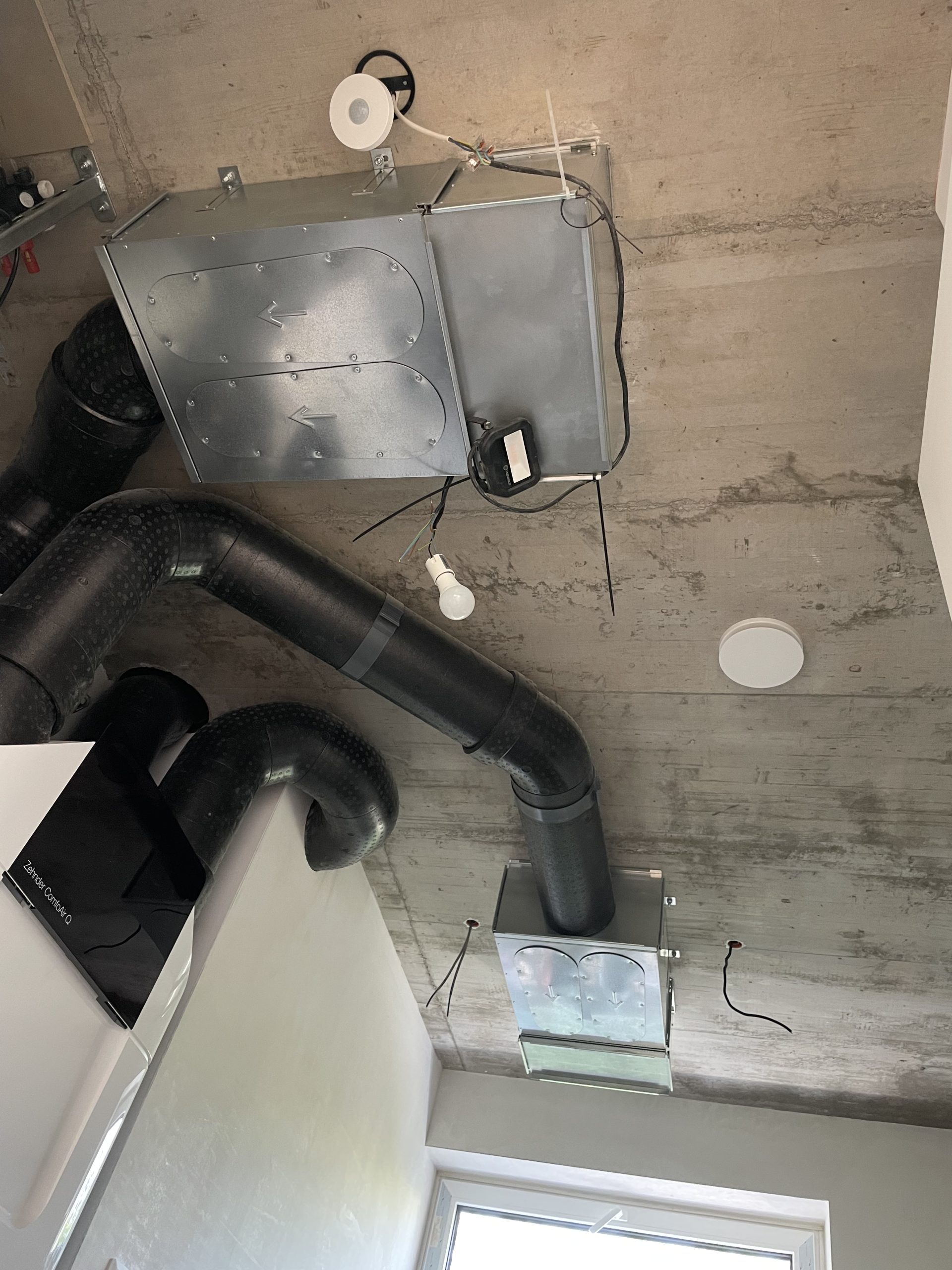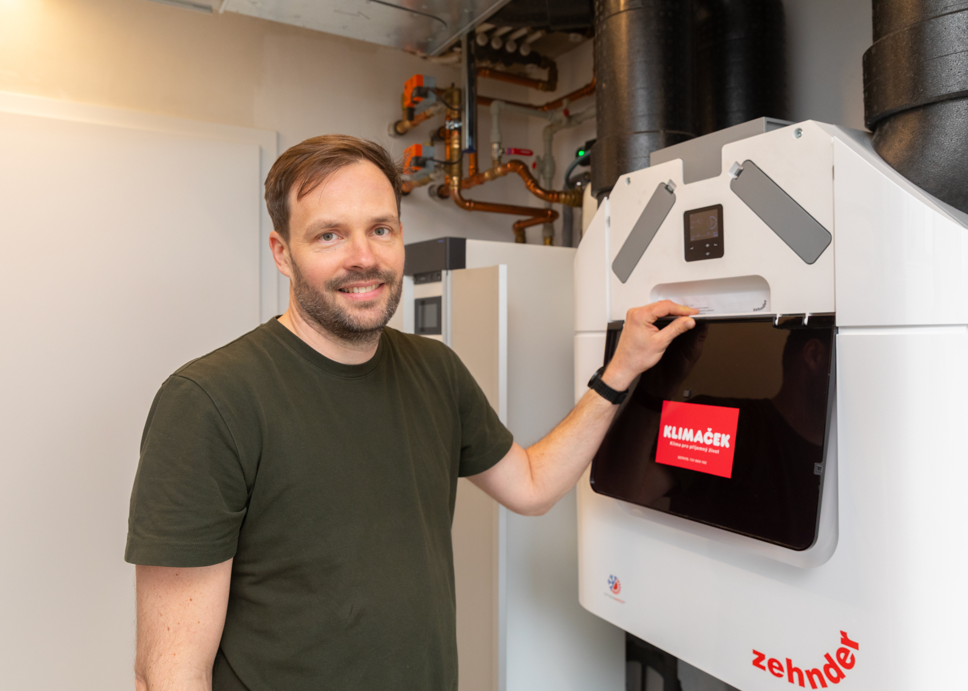 Systém rekuperace se zpětným ziskem vlhkosti je řízen dle CO₂ čidel a napojen na chytré řízení domu, což zajišťuje zdravé vnitřní prostředí s minimálními tepelnými ztrátami.