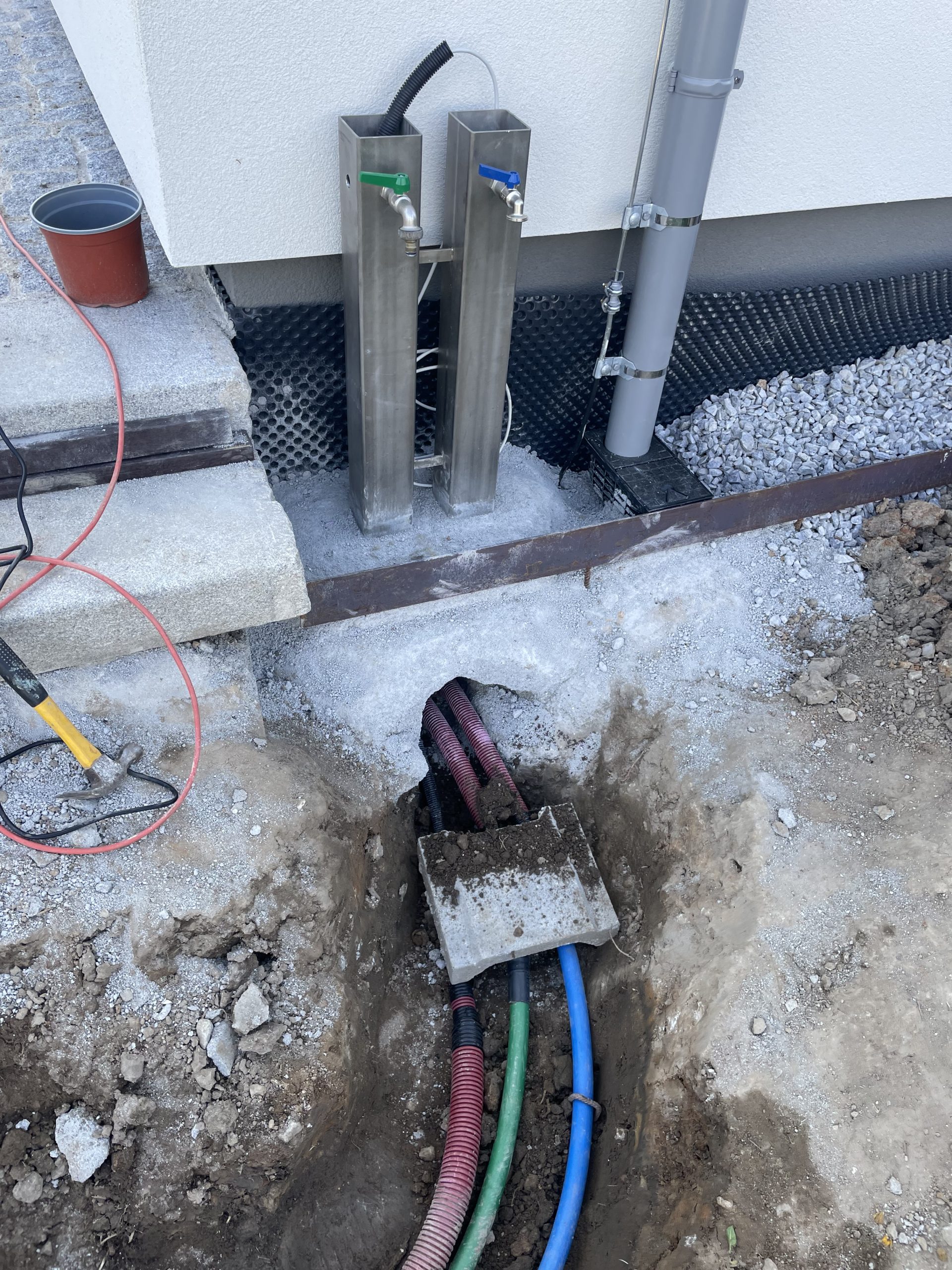 Součástí realizace byl také 100m vrt jako stabilní zdroj energie, retenční nádrž na dešťovou vodu o objemu 3500 l a systém využití vody ze studny pro splachování a jako záložní zdroj. O závlahu se stará čerpadlo WILO pump.