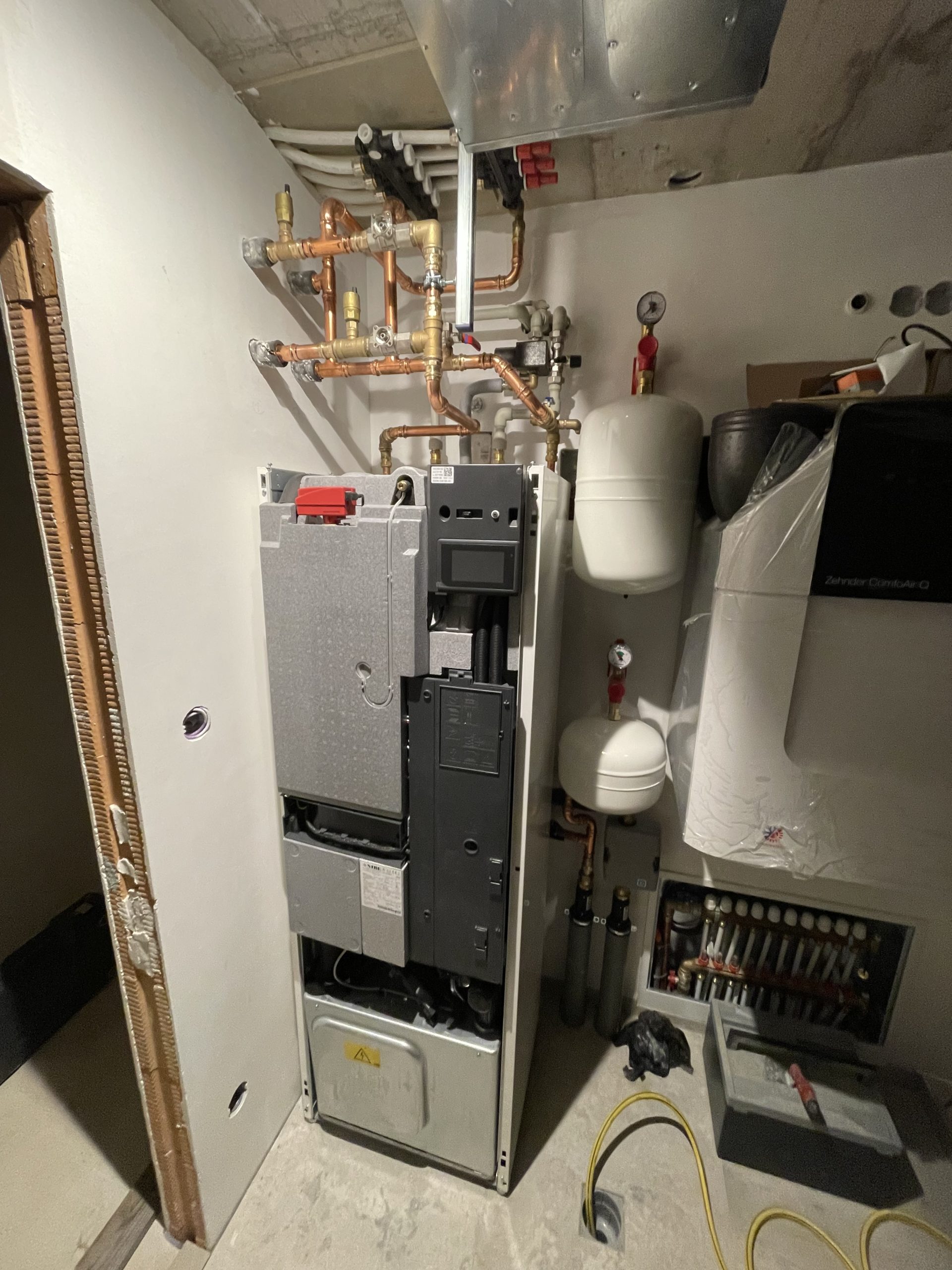 Pro moderní bungalov o ploše 180 m² jsme realizovali komplexní technologické řešení včetně tepelného čerpadla NIBE S1255-6 PC, rekuperace Zehnder Q350 Enthalpy a chytré domácnosti Loxone.